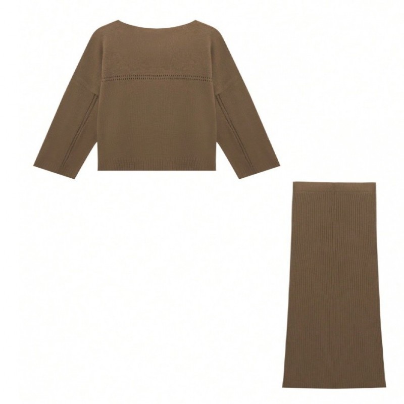 Knit Mix Elegante conjunto de 2 piezas para mujer, conjunto de suéter de punto a la moda con top de manga larga holgada y falda midi, perfecto para el otoño/invierno, también adecuado para Navidad, Acción de Gracias y Año Nuevo