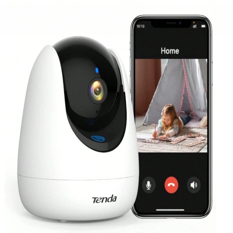 Tenda RP3 Pro, Cámara para Interior, 3MP Ultra Alta Definición, Vision de 360 ° , Control Remoto de App, Llamada con una Sola Pulsación, Detección de Movimiento, Visión Nocturna