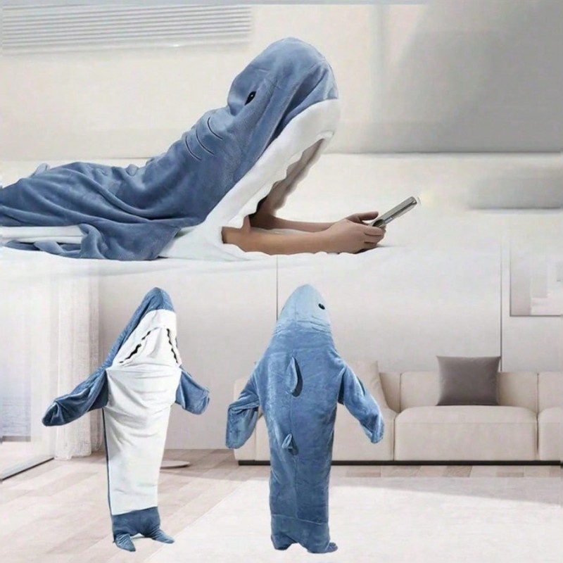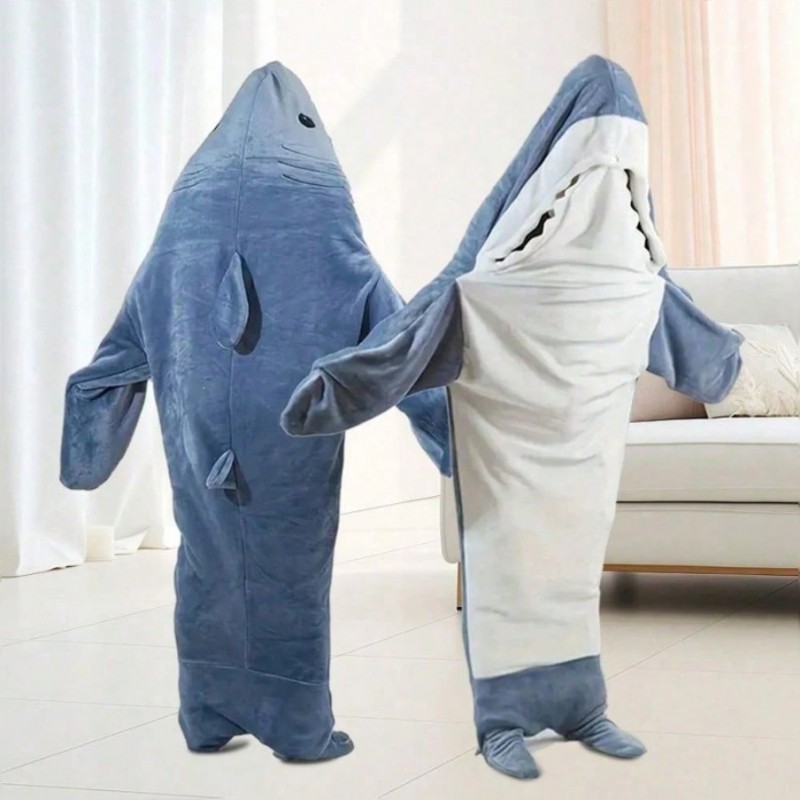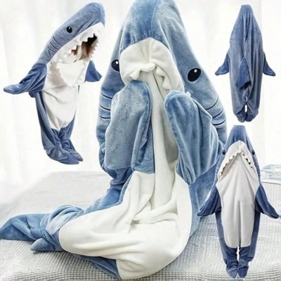 Pijama Estranho e Interessante de Tubarão com Chapéus e Roupões de Flanela Quentes, Adequado para Fantasia de Festa de Halloween, Macacão Saco de Dormir, Coral Fleece Confortável e Respirável, Amigável para a Pele, Uso Casual, Tema Universal para Festas d