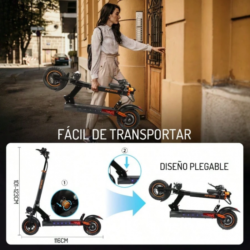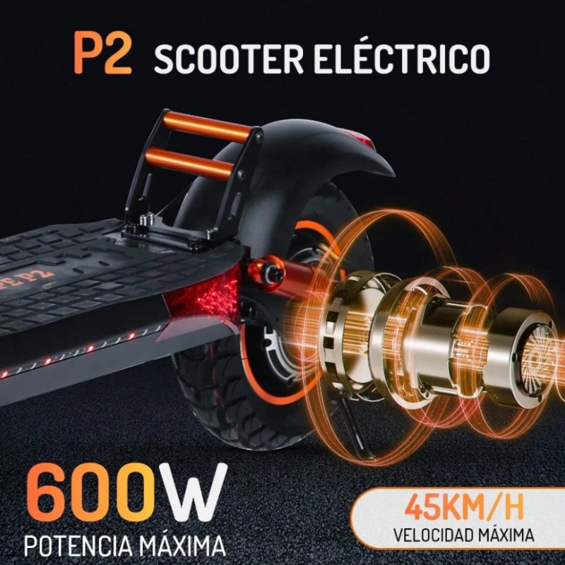 POP SHOPE P2, patinete eléctrico plegable para adultos, motor de potencia máxima de 600W, velocidad máxima de 45KM/H, batería de 10AH, autonomía de 30KM, con asiento plegable, patinete eléctrico con luz LED ambiental para viajes urbanos.