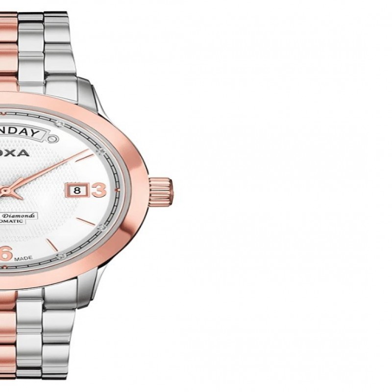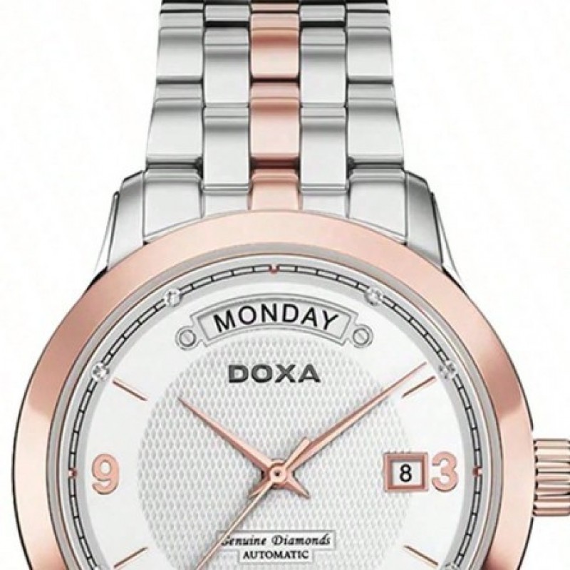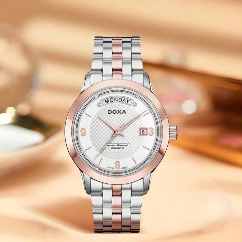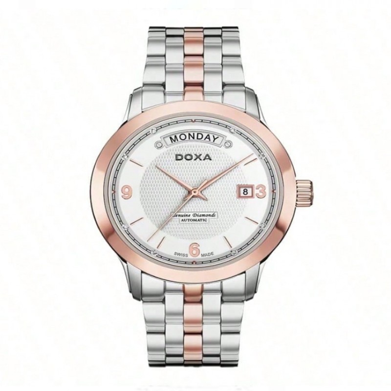 Reloj mecánico para hombres DOXA, esfera blanca, material de acero inoxidable, de negocios, adecuado para uso diario, reloj automático para hombres InterGold (acero inoxidable + chapado en oro rosa + chapado en color gris) esfera blanca (8 diamantes)